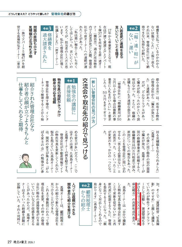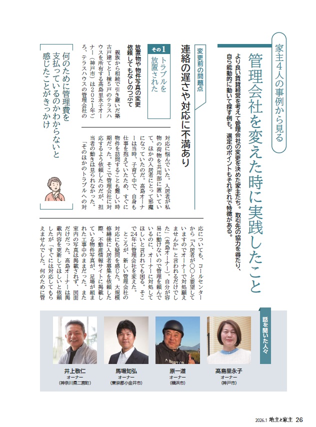 この度、株式会社全国賃貸住宅新聞社が発刊する「地主と家主」2026年1月号vol.184にオーナー様とのインタビュー記事を掲載いただきました。